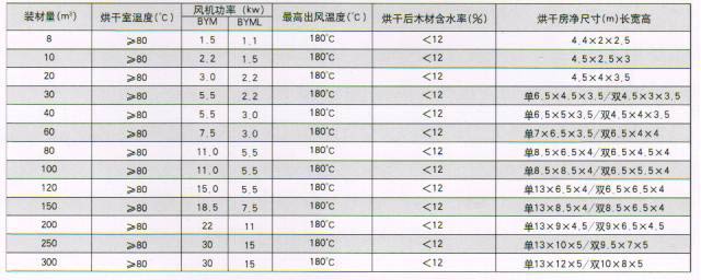 木材干燥系統主要參數: